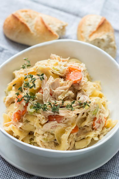 Editor's Note: This tasty chicken noodle soup casserole is made with egg noodles and cheddar cheese, making it extra filling and hearty for cold, winter days. Unlike many other variations of this recipe, our chicken and noodle casserole requires no soup to bake. With fresh ingredients, this made-from-scratch dish is lower in sodium than many other canned versions. This recipe calls for carrots, onions, and celery, but you could easily substitute other veggies if you'd prefer.