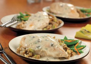 Chicken and stuffing are topped in a delicious mushroom sauce and are then baked together to make one of the tastiest chicken recipes. Serve with your favorite vegetables and you can have dinner on the table before you even know it. Try One-Dish Chicken & Stuffing Bake and impress your family tonight.