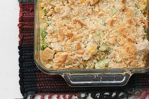 Jazz up an otherwise ordinary recipe for chicken divan by using some crushed and crumbled Ritz crackers on the top of the casserole for added taste and texture. This easy to make Ritz Cracker Chicken Divan is a dish everyone in the family will love. Ready to eat in under an hour and easily feeding up to eight people, this chicken dish is one that every household should be making... after all who doesn't need a fast, convenient and satisfying dinner recipe these days? Break out this easy chicken casserole recipe any time you need a quick dinner fix for your busy family!