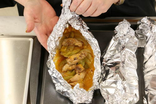 These are perfect for a family, as each packet can be customized for each diner. Kids can choose the ingredients they like and/or omit others. Simply twist the ends of the packets in a different shape to indicate who gets which packet.