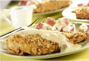 Serve your family easy chicken recipes and watch them enjoy bite after bite. Cheap Chicken Bake is breaded and served with a creamy gravy. Budget friendly and delicious, crunch into this chicken recipe tonight.