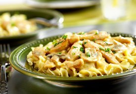 On a busy weekend, sometimes you just need a quick and easy dinner recipe to make for your family. This Chicken Stroganoff Church Supper is a one-skillet meal that's simple to prepare and tastes delicious. With a creamy sauce atop a heaping pile of egg noodles, this dish is comfort food at its finest. Ready to serve in just 45 minutes, this chicken dinner recipe is one of our all-time favorite easy one pot recipes.