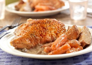 This wonderful dish has it all. Chicken and vegetables roast together in a creamy sauce to make a dish that's easy, hearty and delicious. Chicken recipes are sometimes just what the doctor ordered.