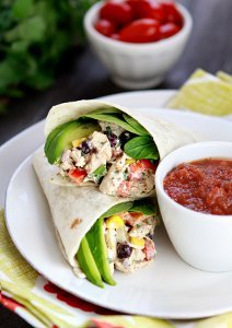These wraps sound delicious! I love chicken salad, especially when it does not contain grapes or nuts! I will make these without the black beans, and I will probably pick up a rotisserie chicken to speed up the recipe. These would be good with a side of fresh salsa, and guacamole.