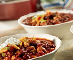 If you are looking for a great way to warm up the body, chili recipes are they way to go. This colorful, quick and and easy chili is loaded with ground beef, green peppers, onions, and beans. Made with a flavorful, spicy tomato juice, Easiest 2-Bean Chili is then topped with cheddar cheese and sour cream. A hearty bowl that the family will love, make this when you need dinner on the table in a jiffy. Enjoy.
