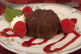 Let cool in pan for 10 minutes, then turn out onto a wire rack and cool completely. Mini-cakes may be reheated for 10 seconds in the microwave before serving with fudge topping and whipped cream and garnished with fresh strawberries or raspberries.