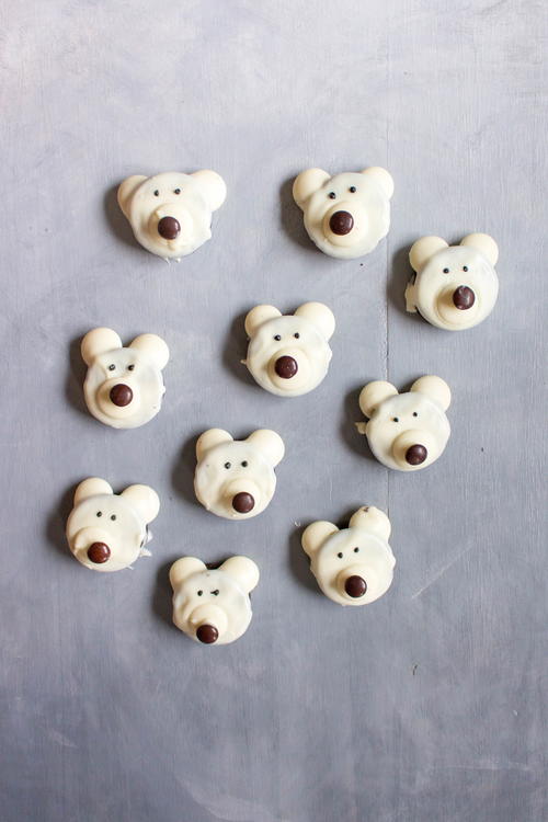 These adorable holiday no bake cookies are simple to make, and everyone will be hoping to get the last one. Polar bear cookies are fun to make with kids, too. Older kids will enjoy dipping Oreo cookies into the candy coating, and even little ones will be able to help assemble this cute little bear's muzzle and nose.