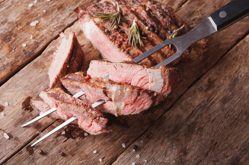 Use a meat thermometer to check the steak's internal temperature. Rare steaks should be about 130° F.