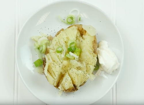 One thing we love about this recipe is that it's perfect for low key entertaining. Baked potatoes are a meal on their own, if you serve them with the right toppings! Make a baked potato bar for your favorite people, complete with shredded cheese, sour cream, broccoli, bacon bits, and maybe even some chili. This is one of the easiest ways to cook for a crowd, and everyone will have so much fun making their own baked potato creation!