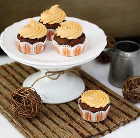 Cupcakes are the perfect sweet treat to serve on Halloween eve because they're fun, festive and kids love them. This recipe for Chocolate Pumpkin Cupcakes gets into the spirit of the season, using pumpkin puree and a variety of fall spice flavors like nutmeg, cinnamon and allspice. If you're looking for a good cupcake recipe for your Halloween get-together, try this one that also has instructions for how to make orange pumpkin cream cheese frosting.