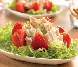 These elegant and easy-to-make stuffed tomatoes make a refreshing alternative to sandwiches. Perfect for your garden fresh tomatoes, Heart Healthy Chicken Salad Tomatoes is a great seasonal meal. Chicken recipes like this one are perfect for lunch or dinner.