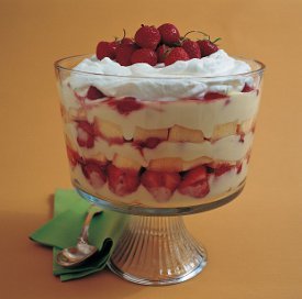 Cut the pound cake into 12 slices, arrange on a baking sheet, and brush each lightly with the sugar syrup. Cut each slice into 6 cubes. Tightly arrange one-third of the cubes in the bottom of a trifle bowl or large soufflé dish. Spread one-third of the pastry cream on top of the cake cubes, smoothing with a rubber spatula. Arrange one-third of the marmalade-coated strawberries on top of the pastry cream. Repeat twice, so that you have three layers each of cake, pastry cream, and strawberries. Cover with plastic wrap and refrigerate for at least 3 hours and up to 1 day.