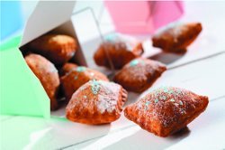 - Fry 3 or 4 beignets at a time for 2 to 3 minutes per side or until each side puffs out and is golden brown. Drain on paper towels and sprinkle with icing sugar or colored sugar. Serve warm.