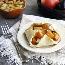 Scoop small quantities of apple mixture into center of pastry square and gently fold edges over the top, allowing the center to remain uncovered.