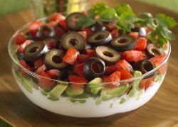 - Serve with variety of fresh vegetables for dipping, such as sliced cucumber, yellow squash, and bell pepper. Garnish dip with sprig of cilantro.