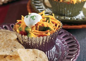 Layer about 1 tablespoon each refried beans, salsa, avocado and cheese into each cup.