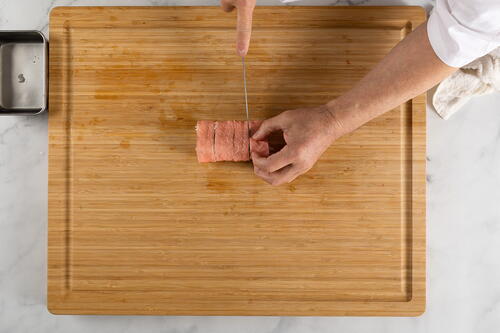 Cut the roll into four equal pieces.