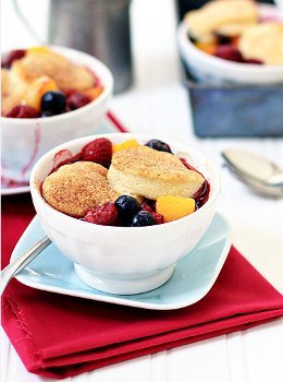 Peach, Raspberry, and Blueberry Cobbler
