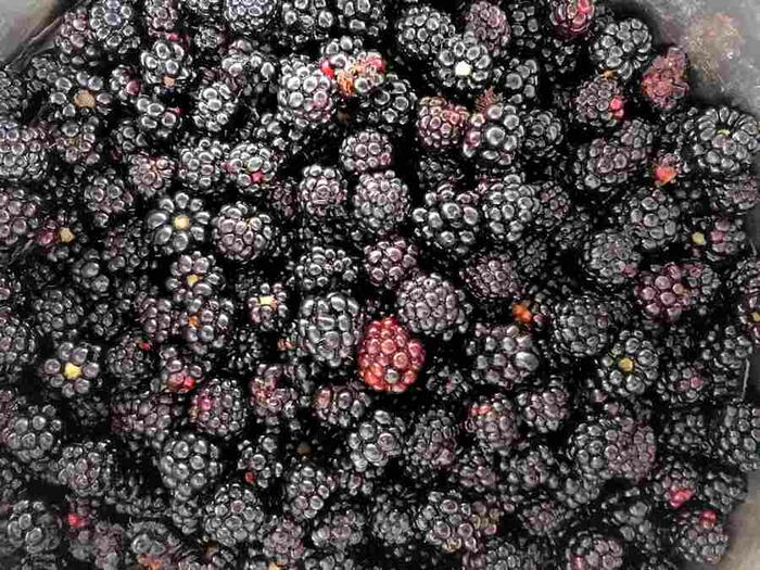 The sweetest blackberries are the ones eaten straight off the plants, your fingers pricked with thorns and stained with the juice, when only one in four lands in the collecting tub.