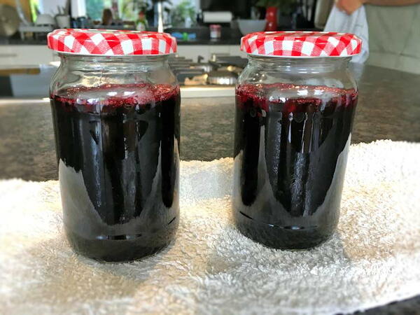 When the jelly is ready leave it to slightly cool down, about 10 minutes, and then carefully fill the jars. Close them tightly and leave for at least a few days to mature before eating.
