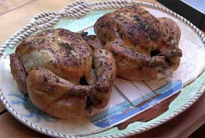 Chicken recipes are great for the summer. This wonderful grilled chicken is rubbed with mayonnaise so when it cooks it gets a mouthwatering golden brown color. Seasoned with fresh thyme and rosemary, it's flavors are incredible.
