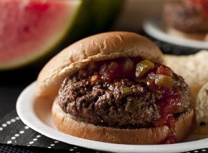 Mix the beef and picante sauce thoroughly in a medium bowl. Shape the beef mixture firmly into 4 (1/2-inch thick) burgers.