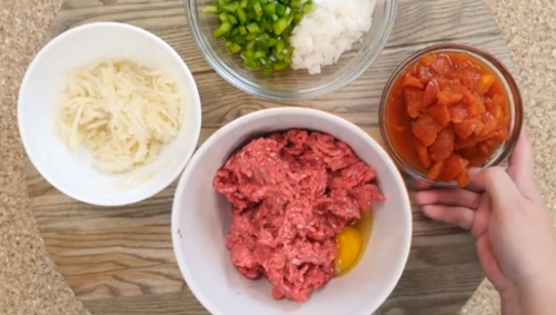 Hash browns in meatloaf? Hmmmm...I've never had Cracker Barrels meatloaf before, but I do love me some meatloaf. It's like having your meat and potatoes all in one. I'm definitely not a fan of ketchup on meatloaf, so I'll have to leave it off but I've found that adding tomatoes in meatloaf...makes it super moist and flavorful.