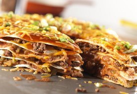This hearty, one-dish meal features layers of ground beef, tortillas, enchilada sauce, refried beans and shredded Cheddar cheese. Once you take your first bite of this Cheesy Enchilada Stack you won't be able to stop. Easy Mexican recipes like this one from Campbell's Kitchen are great for busy weeknights or for a fiesta on the weekend.