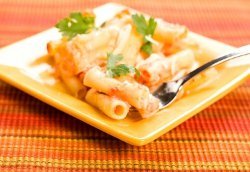 - Transfer pasta mixture to 9-inch by 13-inch baking dish and spread remaining tomato sauce evenly over pasta.