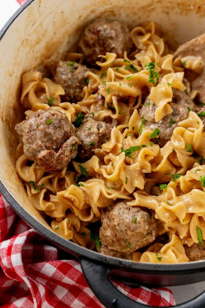 "This One Pot Swedish Meatballs and Noodles recipe is creamy, hearty and delicious, not to mention budget friendly! You can make this recipe even easier by using store bought frozen meatballs. I like to serve this dish with steamed broccoli to soak up any extra sauce on the plate! This Swedish Meatball recipe is the perfect combination of quick, easy and budget friendly home cooked comfort food. Best of all, it’s all prepared in one pot, I recommend a Dutch oven if you have one. But a deep skillet or sauté pan works too. "