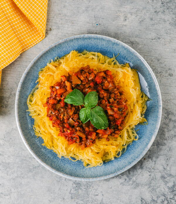 Spaghetti Squash with Lentil Bolognese