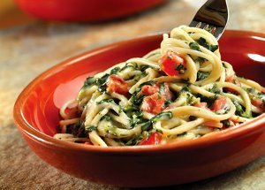 - 1/2 pound of a 1-pound package spaghetti, cooked without salt and drained