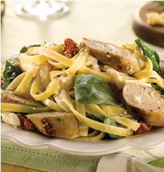 There is nothing more enjoyable than a homemade pasta recipe. Spinach & Feta Chicken Sausage with Fettuccine is packed to the noodle with, sun-dried tomatoes, spinach, garlic and Parmesan cheese. Get those forks twisting and enjoy!