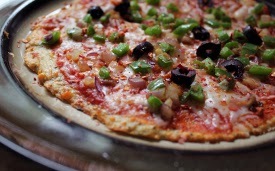 I had never thought of using pork rinds as the crust for a pizza, though both my wife and I love pork rinds. My wife loves olives, so this would be right up her alley. I'm not really a fan, so I'd probably opt for some different toppings for my half of the pizza, like onion and some crumbled sausage.