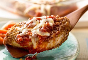 An Italian-take on pork chops, these flavorful crunchy chops will have your family eating chop after chop. Covered in an onion-seasoned coating and topped with a rich marinara sauce and mozzarella cheese, each bite of Pork Chop Mozzarella will have you thinking about your next bite and the one after that. One of our favorite pork chop recipes that goes with pasta, you have to try it for a quick dinner tonight.