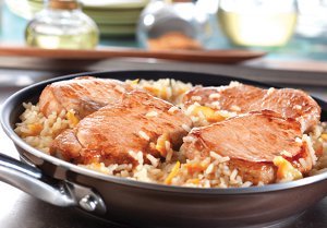 This lightning fast skillet is made with only five ingredients and is perfect for when you need dinner on the table in a flash. Quick Glazed Pork & Rice Skillet is made with minute rice and simmered in a sweet and sour sauce that will have you eating bite after bite. Coming together in minutes, it may be one of the fastest pork chop recipes you'll try.