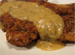 Mustard sauce with pork chops...that's something that I'd never in life think of trying, but the pork chops look amazing! I've always wondered...why do people call it chicken fried? Chicken fried steak, chicken fried pork chops, ect...is it because it's fried in oil? Why not just call it fried pork chops? Either way, it still sounds yummy...I'm not sure how I feel about the mustard sauce but I think it would be awesome with chicken tenders or nuggets. Personally, I think this fried pork would really go well with an apricot sauce.