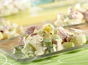 Add the potatoes, celery, green pepper, onions and eggs and toss to coat. Cover and refrigerate for 3 hours or overnight.