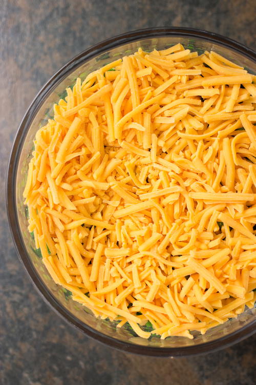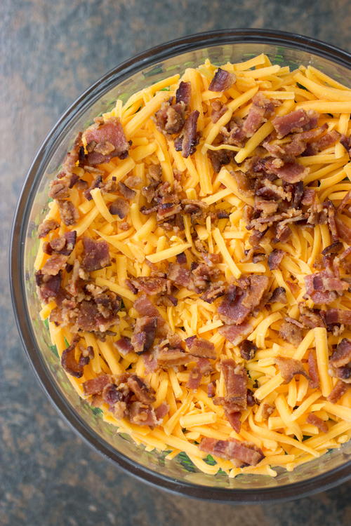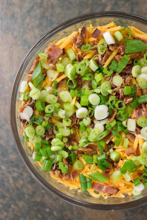 Your finished salad should look something like this. You may choose to layer it differently or use different ingredients, but this is a great basic recipe that will please a crowd.