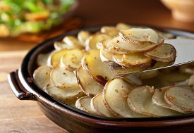 Flavor Variation: In step 1, layer half the potatoes in a 3-quart shallow baking dish. Sprinkle with 1 teaspoon dried basil leaves and 1/8 teaspoon ground black pepper. Repeat the layers and proceed as directed.
