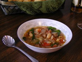 This Easy Italian Sausage Soup is chocked full of hearty goodness that's just perfect for when the weather gets colder. With onion, garlic, cannellini beans, stewed tomatoes, spinach and more cooking with the delicious ground Italian sausage, this is one of those homemade soup recipes that's sure to please almost every taste bud at the table. Make this satisfying easy soup recipe this winter and get ready for your family to beg you to make it again and again!
