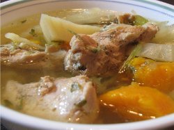 - Chop celery, potatoes, sweet potato, carrots, pepper to the same size chunks.