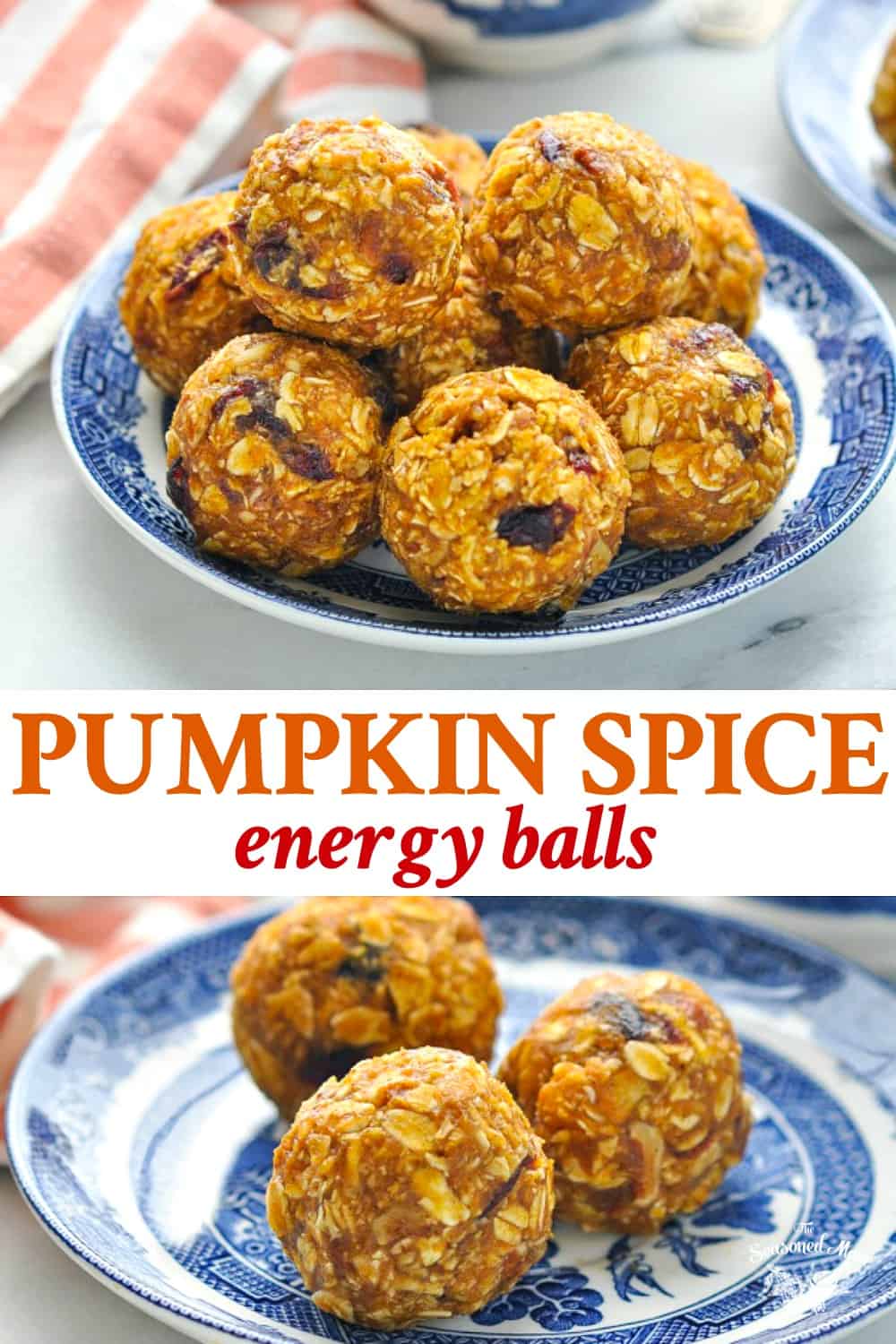 "A taste of autumn in every bite! These No-Bake Pumpkin Spice Energy Balls are a vegan, healthy snack with just 10 minutes of prep. You'll love the combination of sweet pumpkin, warm spices, chewy oats, tart cranberries and crunchy pecans for a grab-and-go treat that will put a pep in your step! Energy balls, energy bites, or energy snacks are simple hand-held snacks that include a satisfying combination of protein, carbohydrates, healthy fats and filling fiber for an efficient and delicious treat that fuels your day. Energy balls are a portable snack that can be prepared in advance and tailored to suit a variety of dietary and taste preferences. This vegan energy balls recipe is a great way to use up a little bit of leftover canned pumpkin puree that you might find sitting in your fridge at this time of year. "