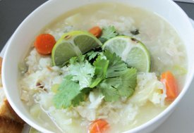 I make chicken soup like this in a cup rice pot I take the breasts off and cut them in half and put each in a container and put the containers in the freezer for sandwiches later or to put in another chicken soup pot or any other meal containing some chicken I take the a leg an thigh and put them in containers in the freezer also two more meals I put the carcass with wings and any juices in the container in the pot with water and a won ton soup powder and set the rice pot on cook While that is cooking I dice an onions and cut up carrots and celery By that time the chicken is read to debone I cut all the meat up into cube size pieces put into pot and add more water to the broth Then add veggies cooking until they are…Read More soft Add garlic powdered onion salt pepper oregano and parsley We either usually eat it with clear noodles The removable pot can be put in fridge for next meal We do not put rice in pot as it will suck up all the broth If we want rice we use a smaller rice pot to make rice in for the meal and store it separately in the fridge We can usually get meals for two of us out of one pot and then multiple meals out of the parts put in the freezer