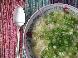 - Stir the soup to separate the eggs into shreds. Remove from heat and add green onions. Serve immediately.