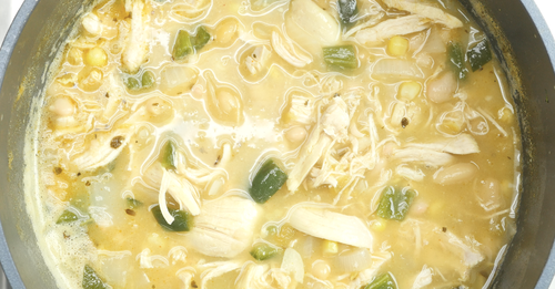 If you're looking for an excellent Mexican soup recipe, look no further than this Chicken and Chili Mexican Soup. It has all of those "south of the border" flavors that you've come to know and love: poblano peppers, green chilis, chili powder, cumin, and cilantro. This easy soup recipe balances the heat from the spices with chicken broth, corn, and cannellini beans. It's almost like you're eating a chicken taco — just without the mess of a split tortilla shell.