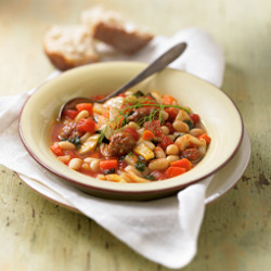 I made this stew and it was delicious! My local farmers market didn't have fresh fennel, but the closest to it was Anise. I used diced tomatoes with basil, garlic and oregano with no added salt instead of plain petite diced tomatoes and also dried basil instead of fresh. I also used Johnsonville hot Italian sausage. It will definitely warm you up on a cold day! Loved it! I think even a little pasta would have been great to add to it too!