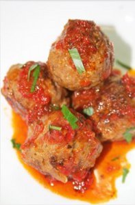 In batches, brown the meatballs on all sides, making sure to sear them well. As they finish, add them to the piquillo pepper sauce.