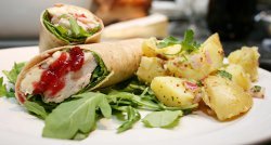If you're hosting Thanksgiving this year, you'll need some leftover turkey recipes once the holiday passes. This Oven-Roasted Turkey Wrap is a simple, creative way to reinvent that leftover turkey (and leftover cranberry sauce too)! Slices of brie cheese perfectly complement this tasty wrap sandwich.