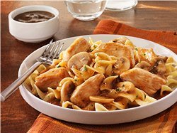 - Add turkey filets to skillet mixture. Simmer until turkey is heated through. Serve over hot cooked noodles.